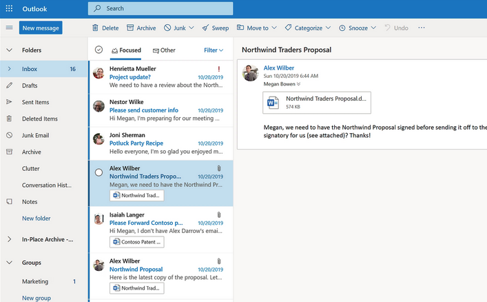 - Postfachzugriff auch via Webmail mit Web-Outlook, der herausragenden browserbasierten Oberfläche